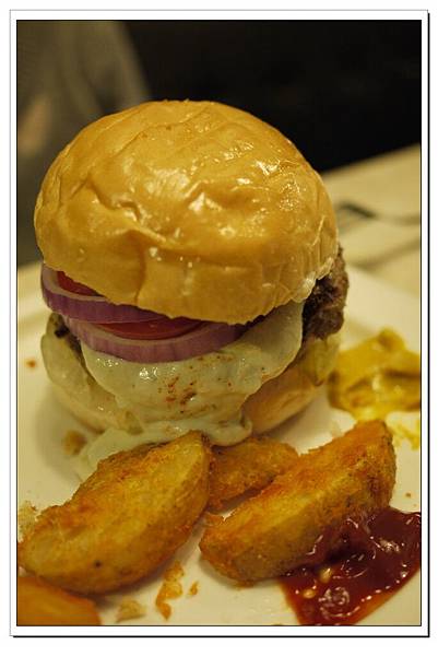 【噴漿藍起司牛肉堡+炸切塊薯角】